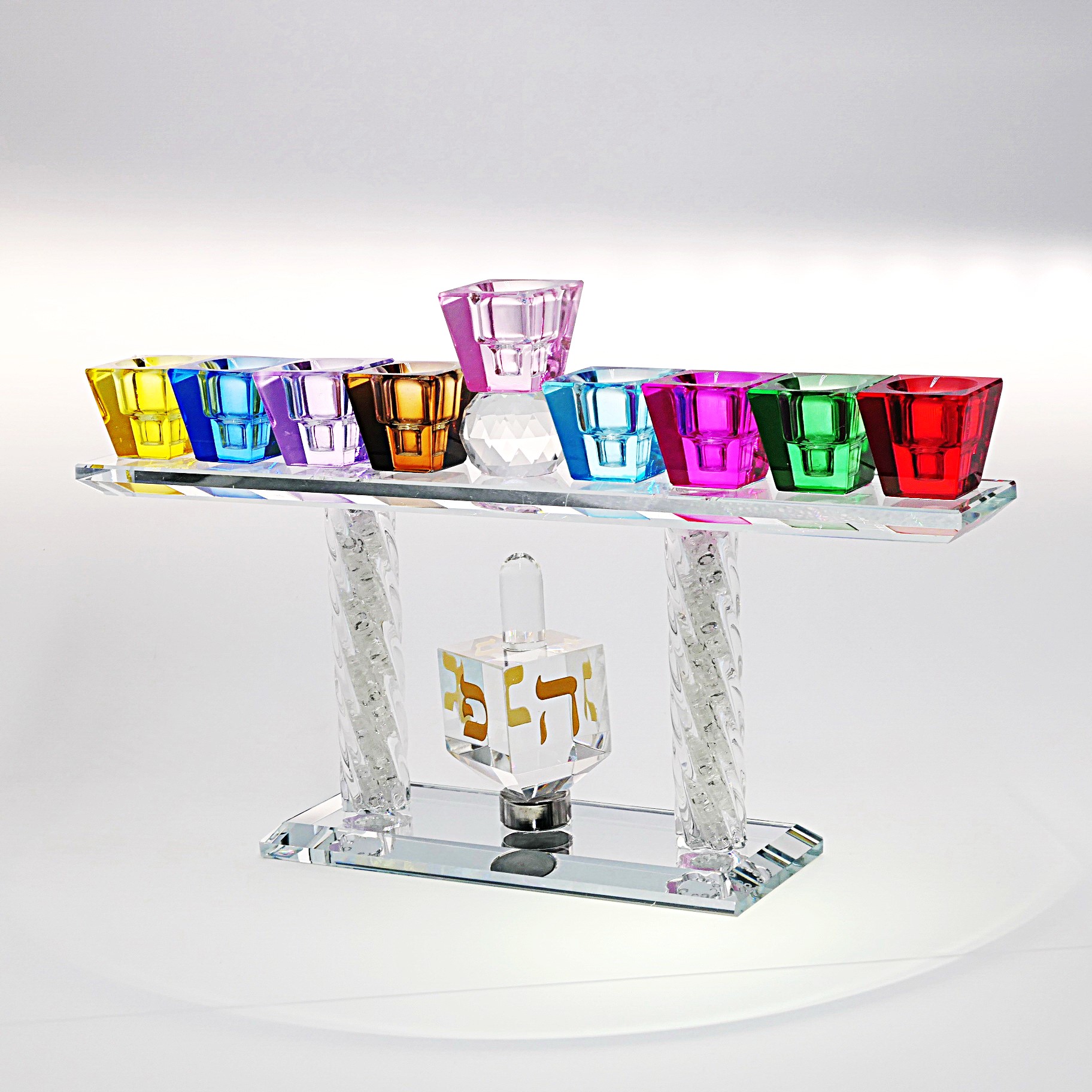 חנוכיה קריסטל 16סמ צבעונית+סביבון
