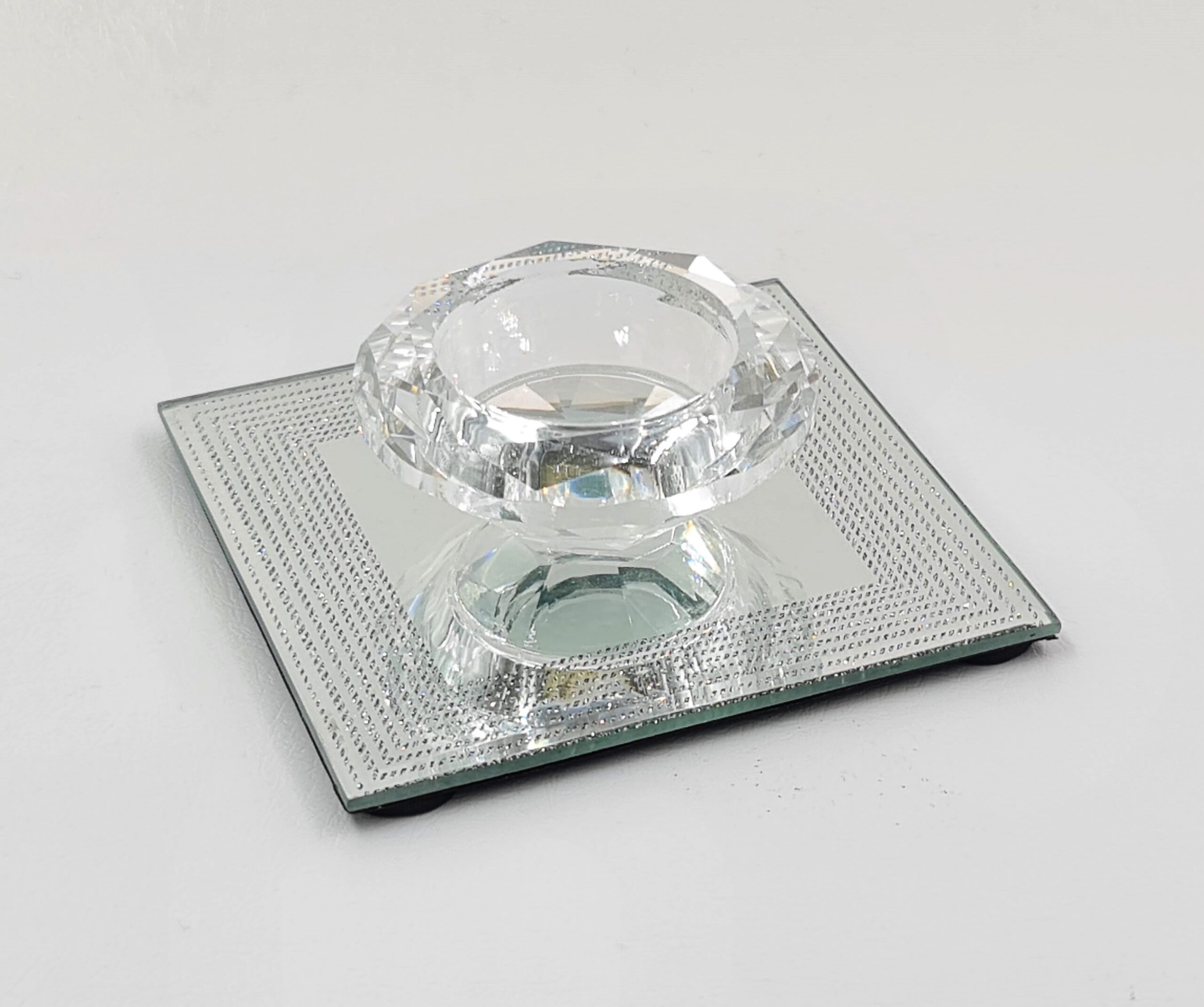 פמוט בסיס מראה פסים כסף10X10ס’מ