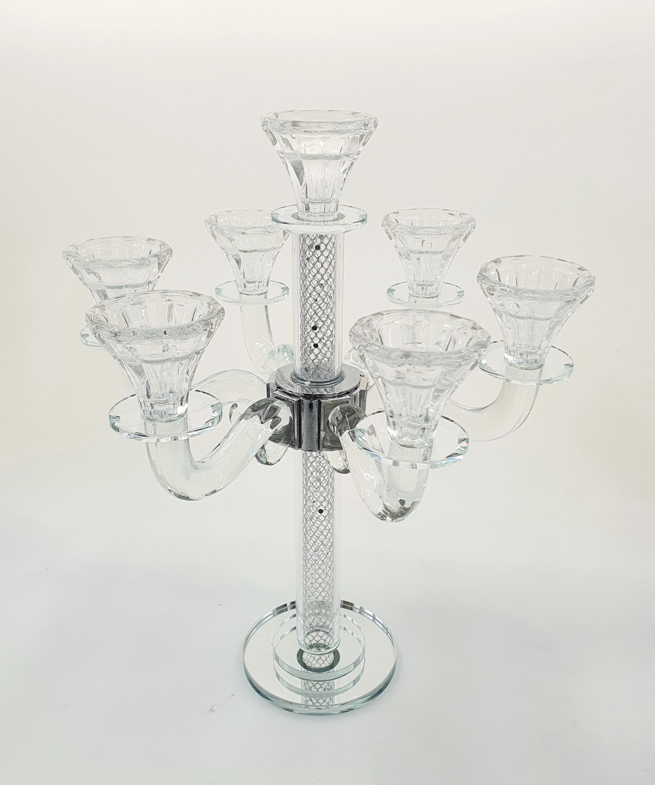 *7.3 פמוט 7קנים קריסטל סליל כסף 34ס’מ