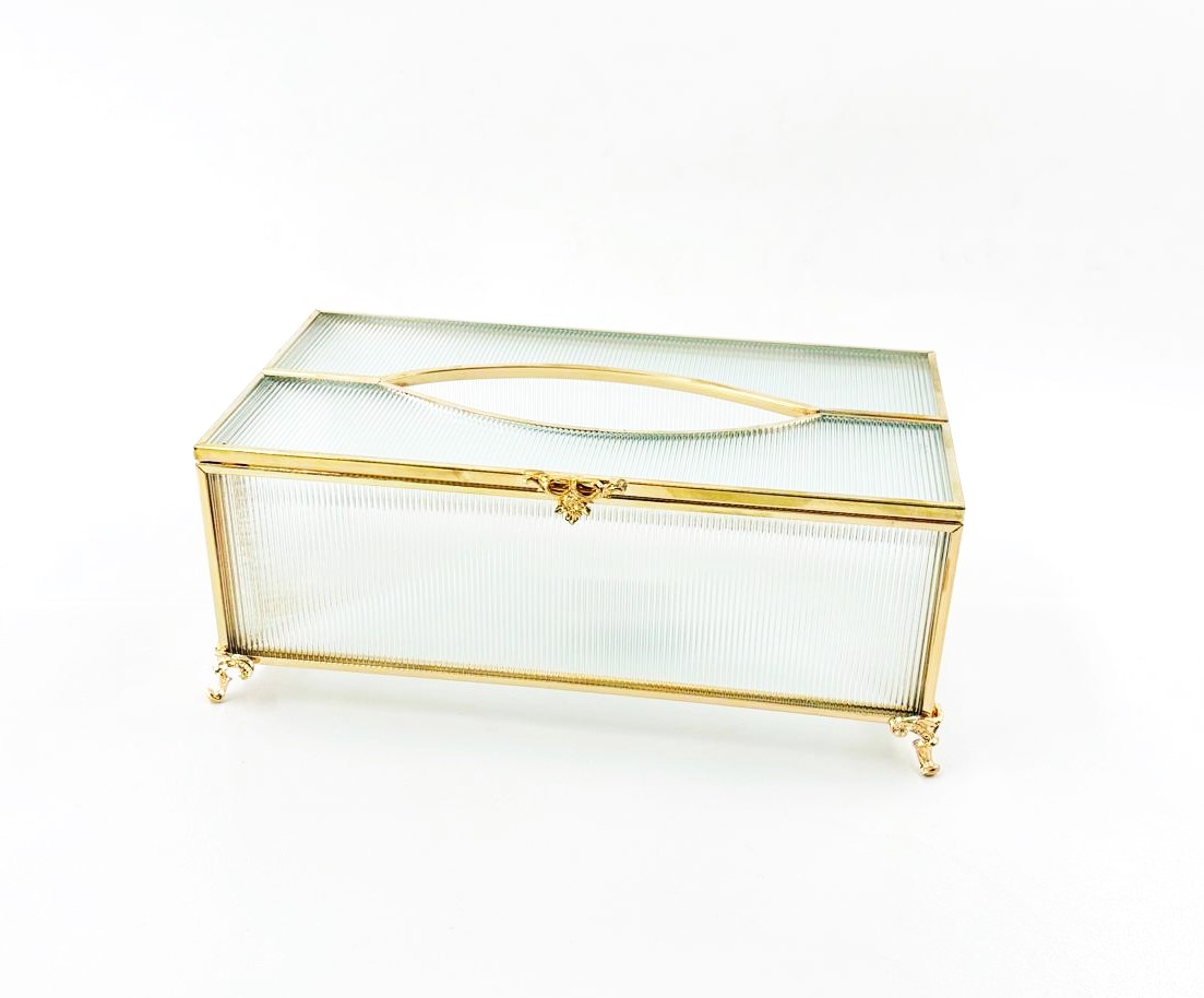 קופסא לטישו זכוכית מוזהבת 23X12