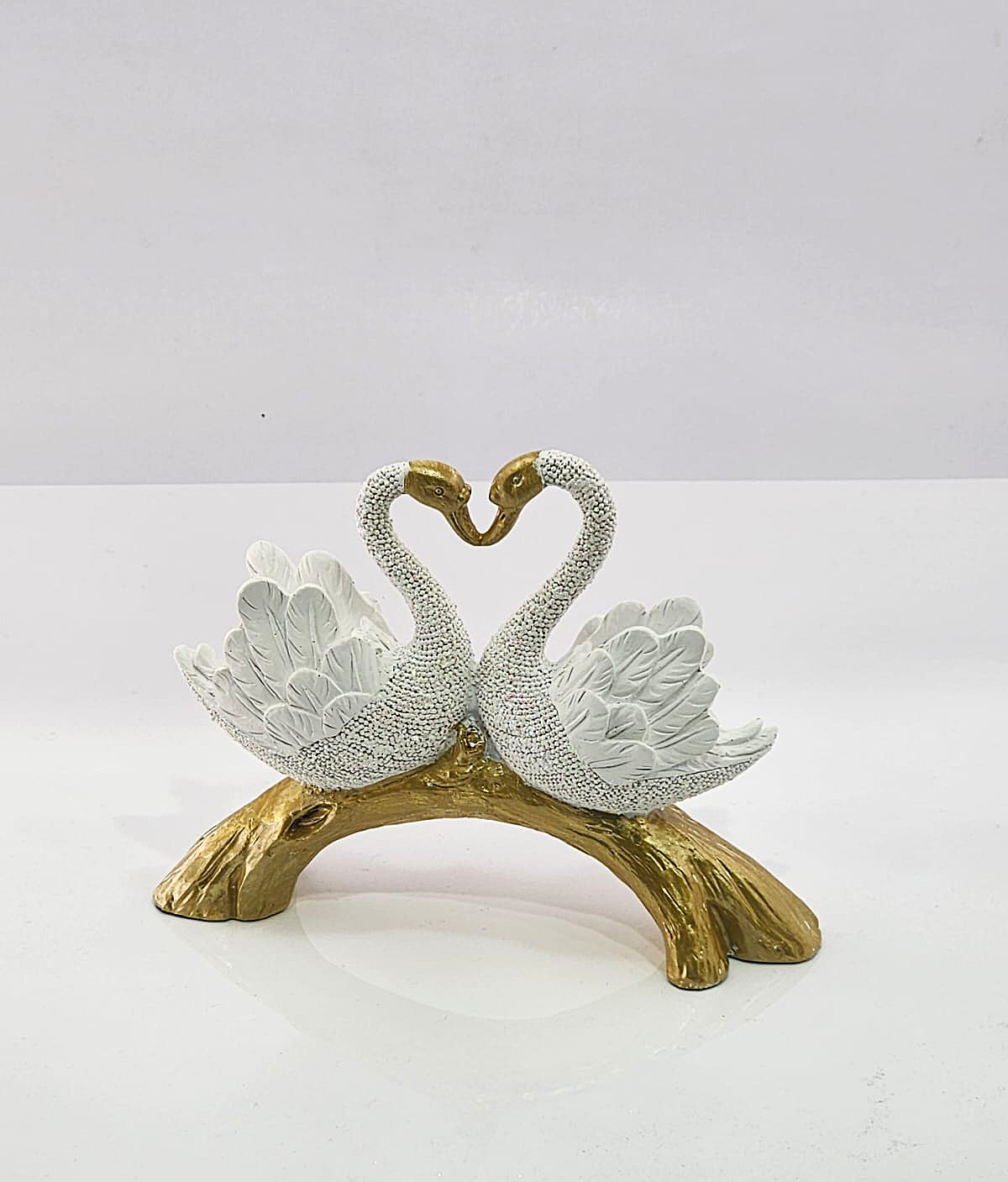 זוג ברבורים לבנים על ענף זהב מנצנץ