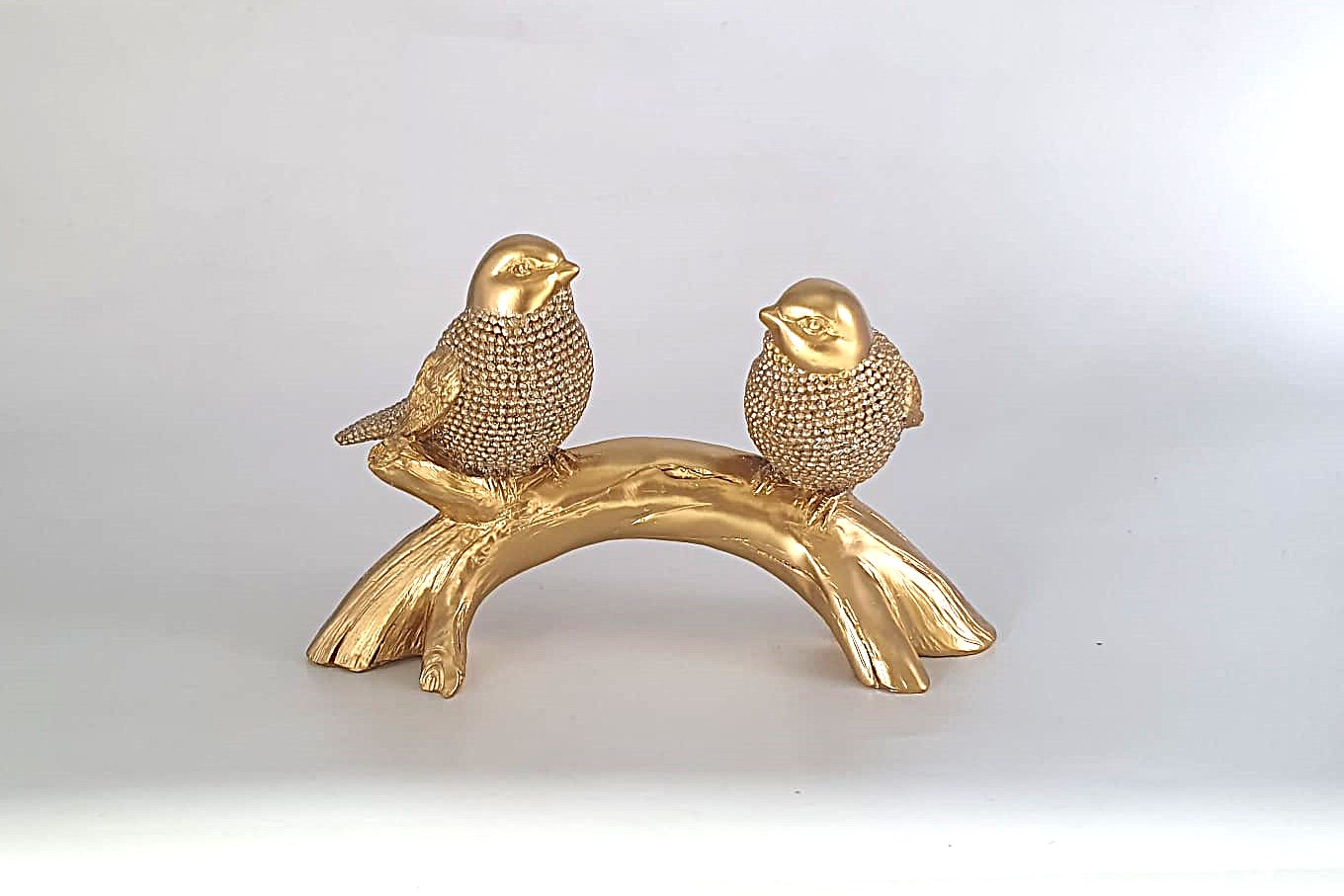 זוג יונים מוזהבים על ענף זהב מנצנץ