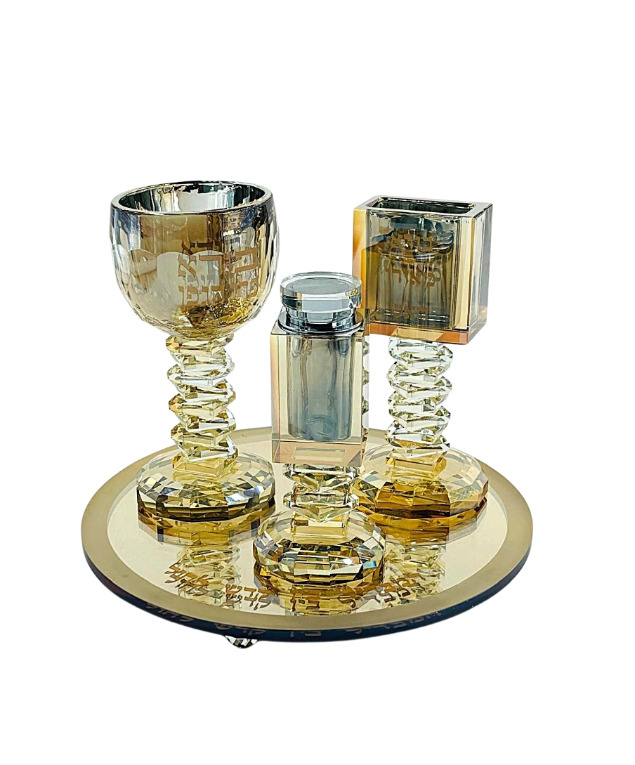 סט הבדלה קריסטל מוזהב מגש עם ברכה19X22