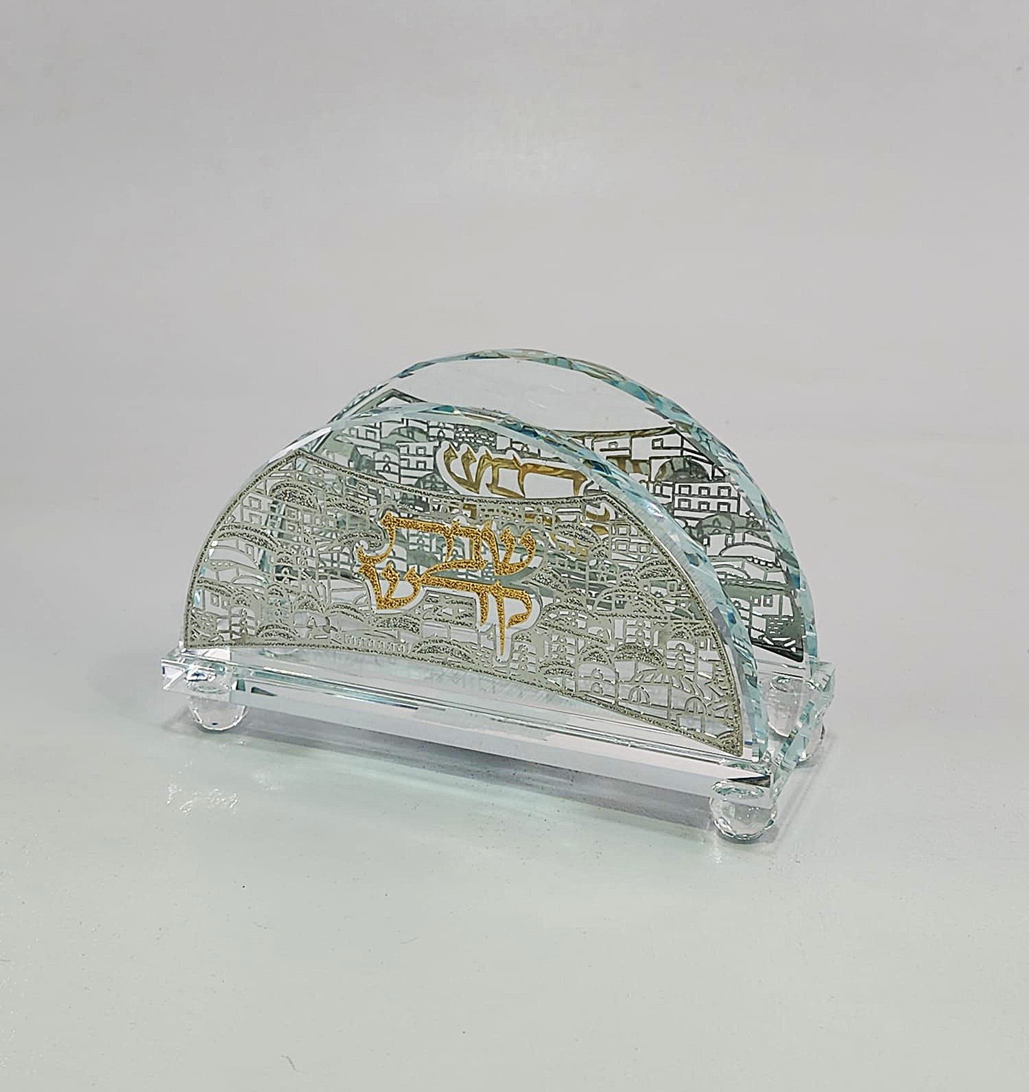 *7.3 סטנד קריסטל לזמירות פלקטה מוזהבת16X9X18