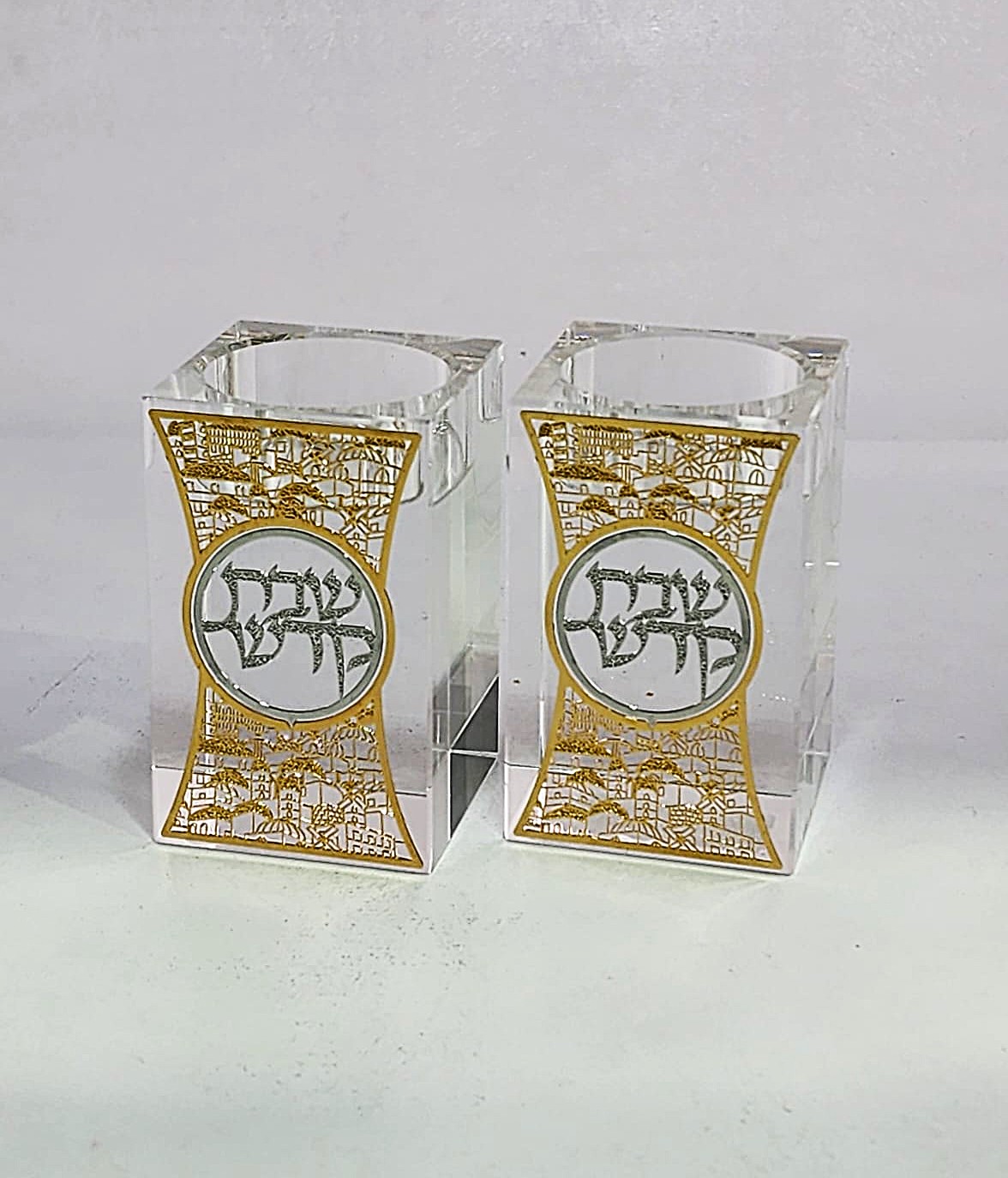 *7.3 80יח זוג פמוט קריסטל 8ס’מ פלקטה מוזהבת